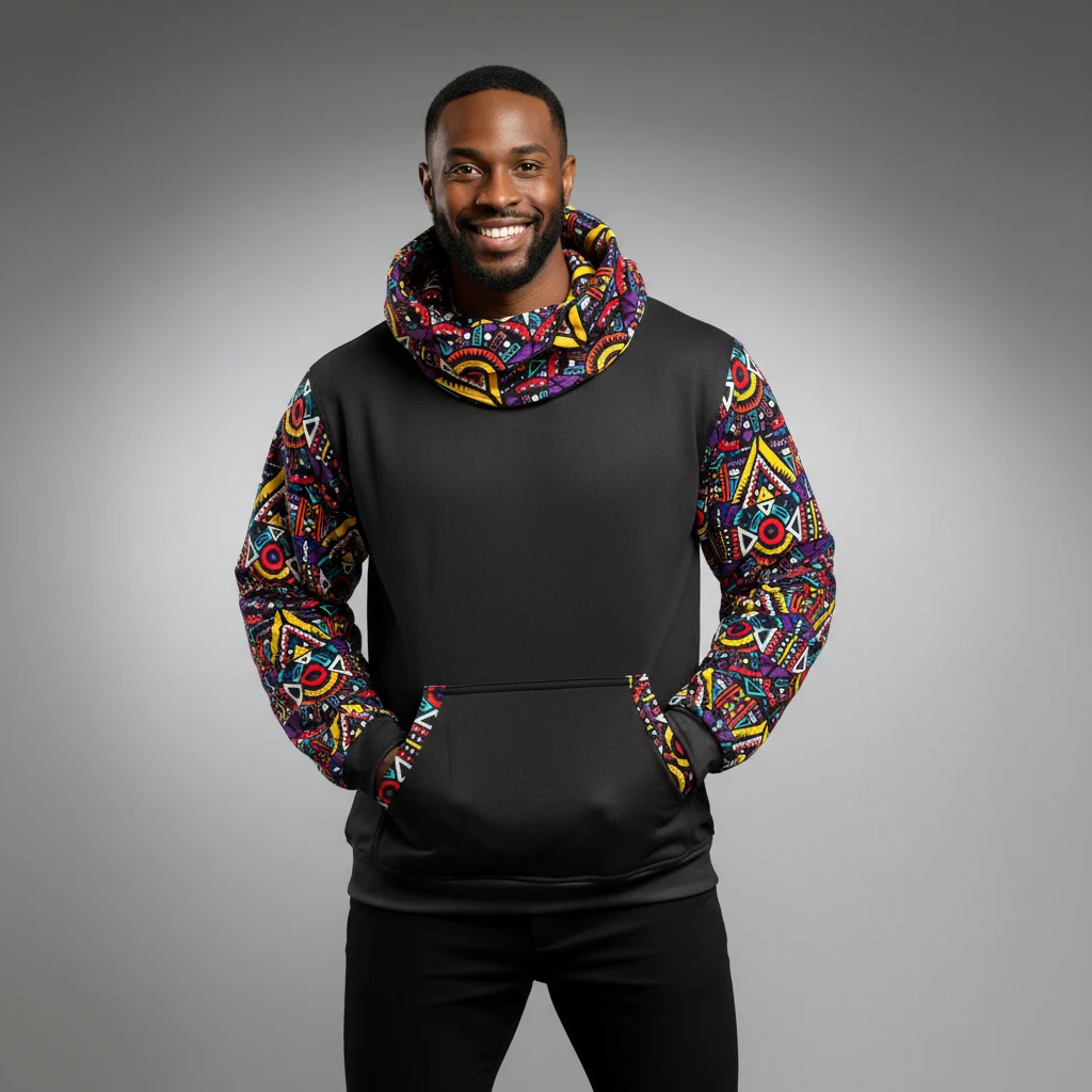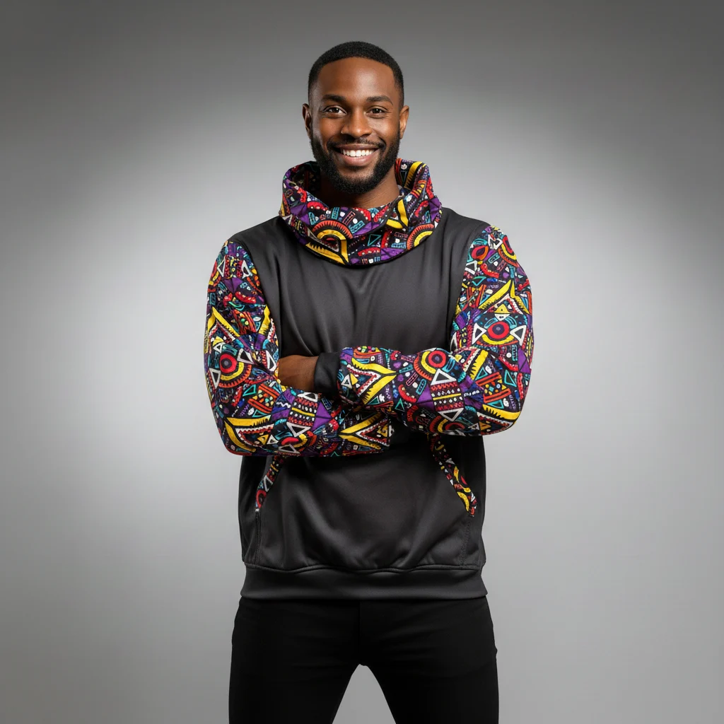 Elk stuk is met de hand afgewerkt met unieke Afrikaanse stoffen details, waardoor elke hoodie echt uniek is.