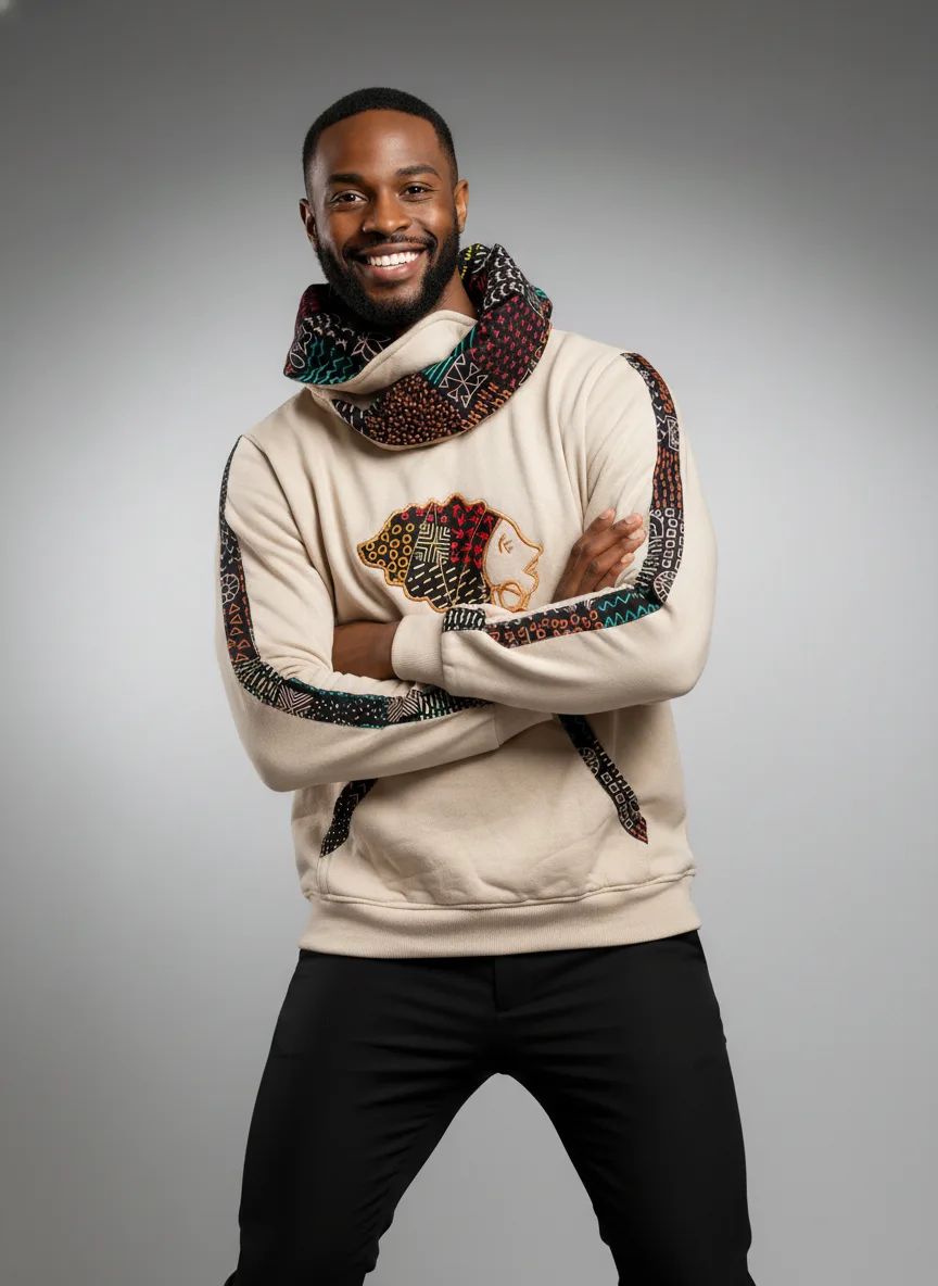 Elk stuk is met de hand afgewerkt met unieke Afrikaanse stoffen details, waardoor elke hoodie echt uniek is.