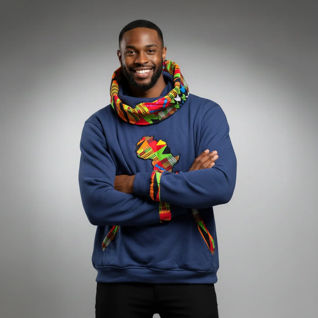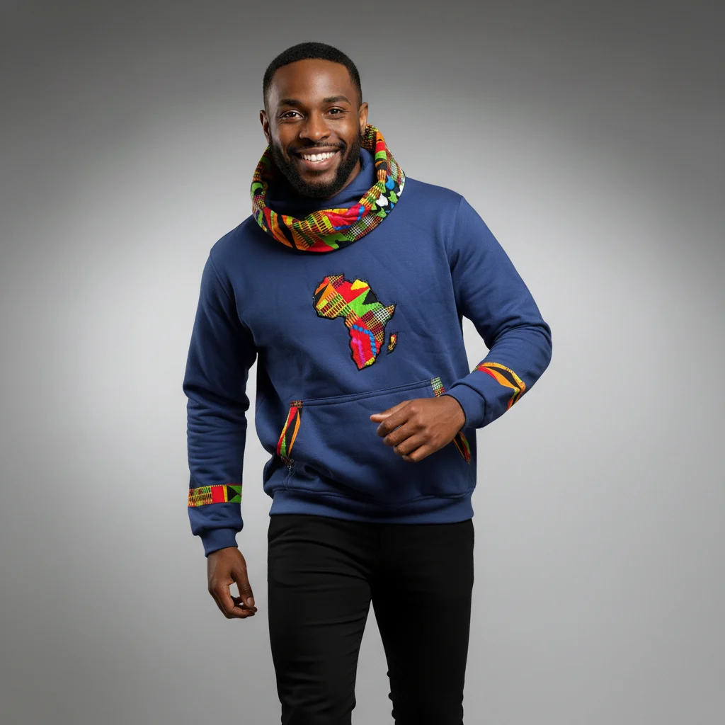 Elk stuk is met de hand afgewerkt met unieke Afrikaanse stoffen details, waardoor elke hoodie echt uniek is.