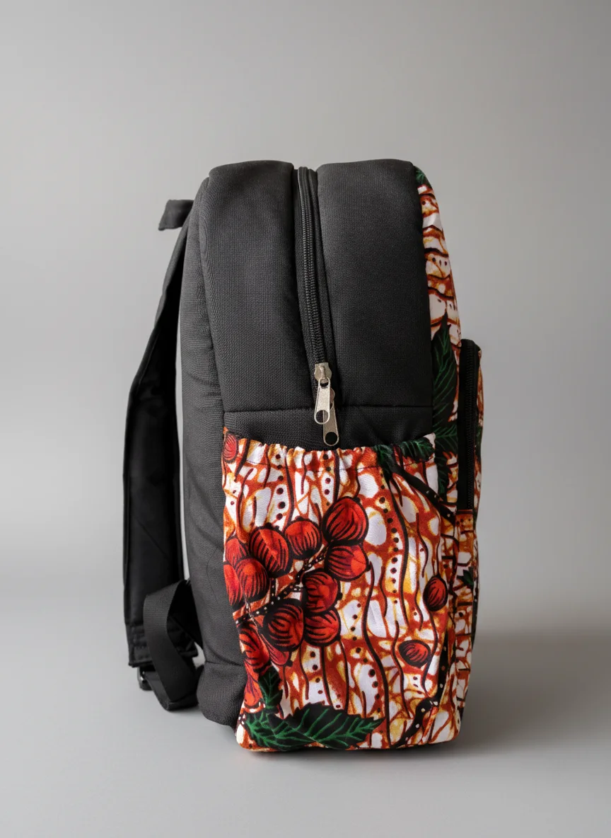 Look at this beautiful handmade backpack from African fabrics. Perfect for a day trip. The fabrics are handpicked and made into these beautiful bags by our talented tailor working from Entebbe. We discovered this tailor on an evening walk in Entebbe. We saw here bags hanging in her small shop along the roadside and we loved them. She was working on a piece on her foot powered sowing machine and we saw the way she worked with precision. Every piece is unique. By buying this bag you support the local artisan in Uganda.