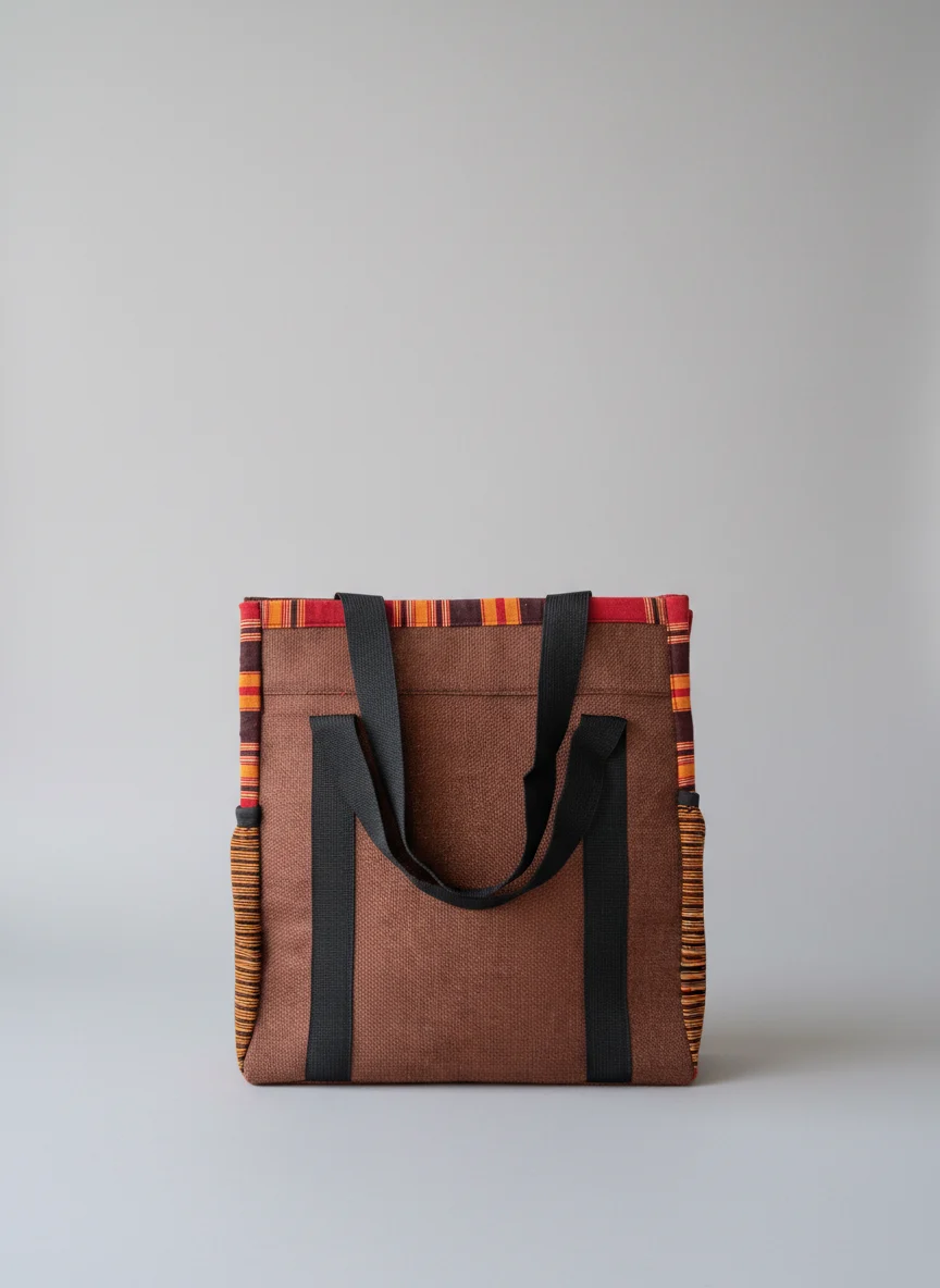 Traditional Kikoyi tote bag brownTraditional Kikoyi tote bag brown