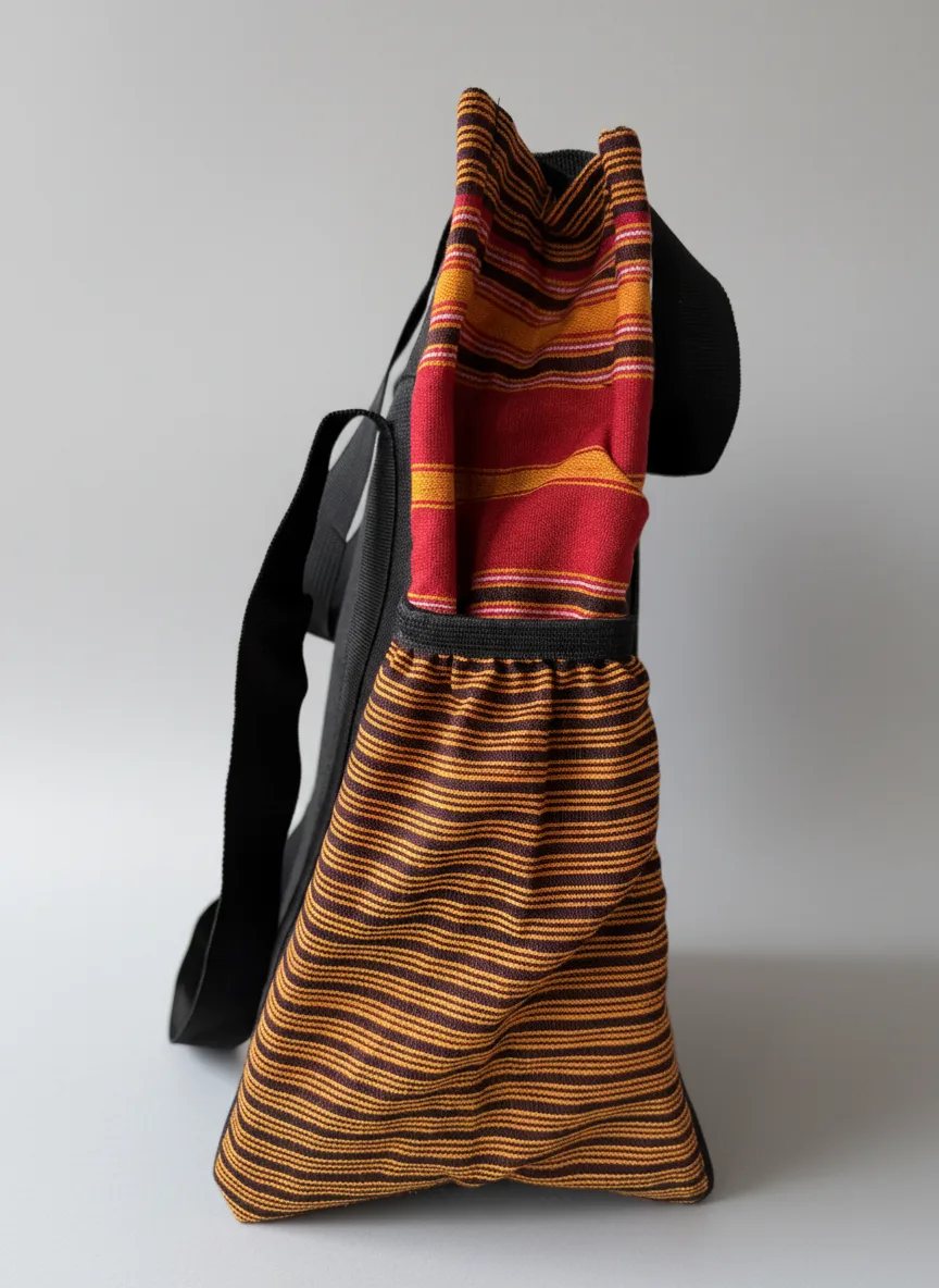This tote bag is made from traditional Ugandan Kikoyi farbric. The fabrics are handpicked and made into these beautiful bags by our talented tailor working from Entebbe. We discovered this tailor on an evening walk in Entebbe. We saw here bags hanging in her small shop along the roadside and we loved them. She was working on a piece on her foot powered sowing machine and we saw the way she worked with precision. Every piece is unique. By buying this bag you support the local artisan in Uganda.