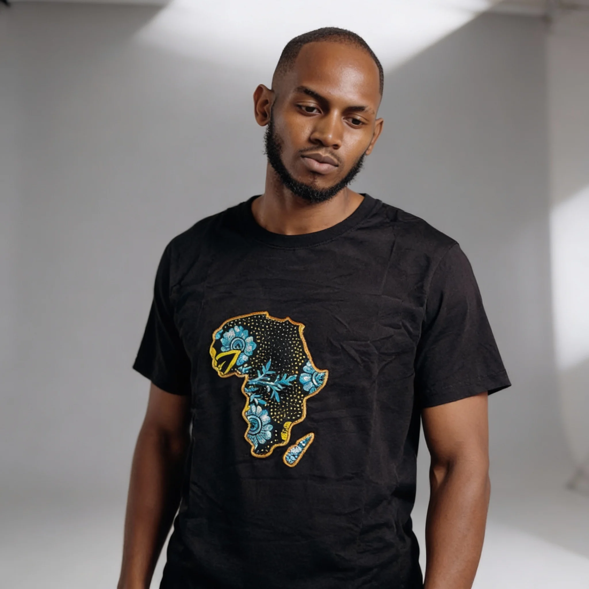 - Modern design: A solid black base highlighted by contrasting graphic African map