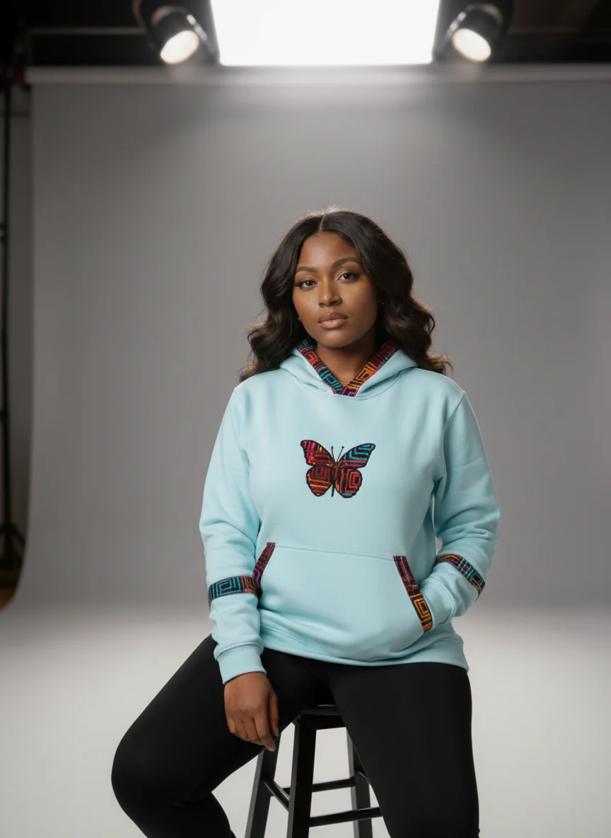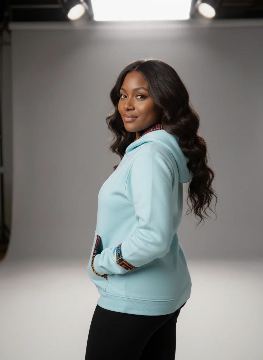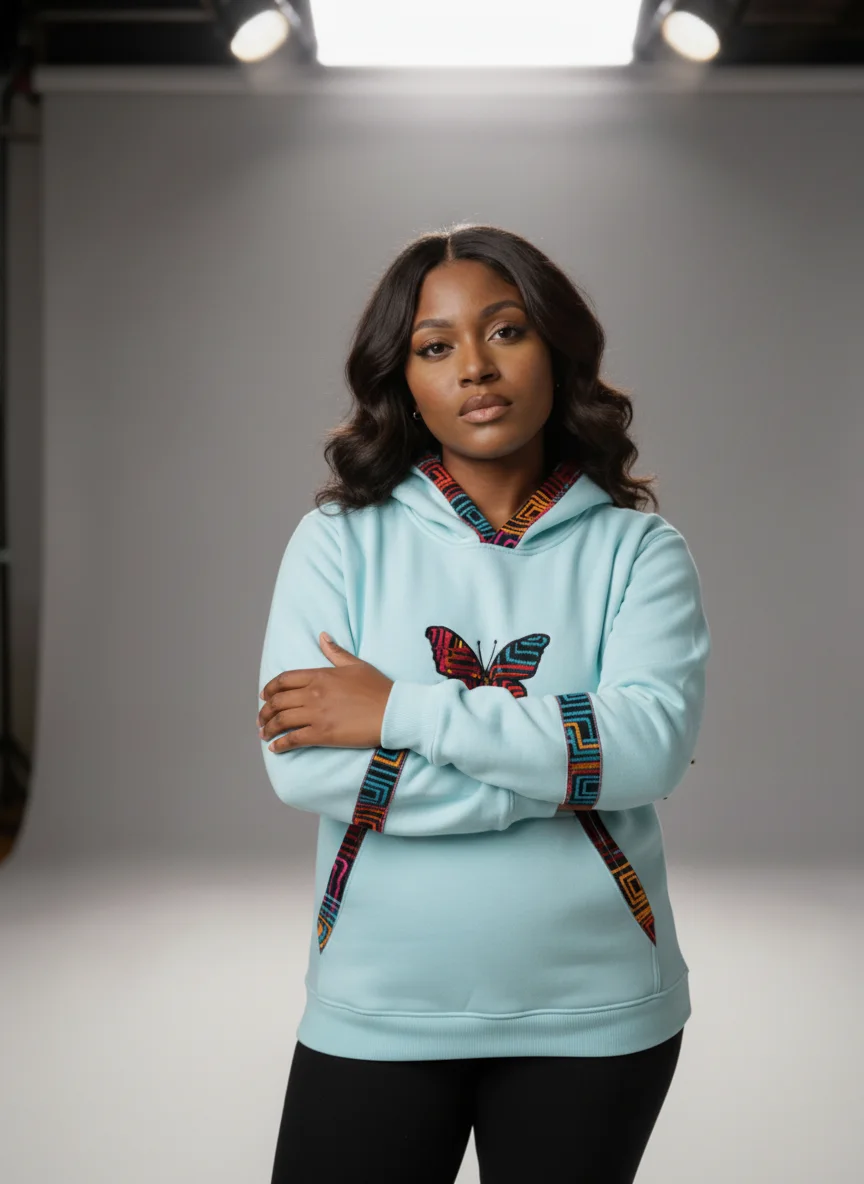 Each piece is hand-finished with unique African fabric details, making every hoodie truly one-of-a-kind.